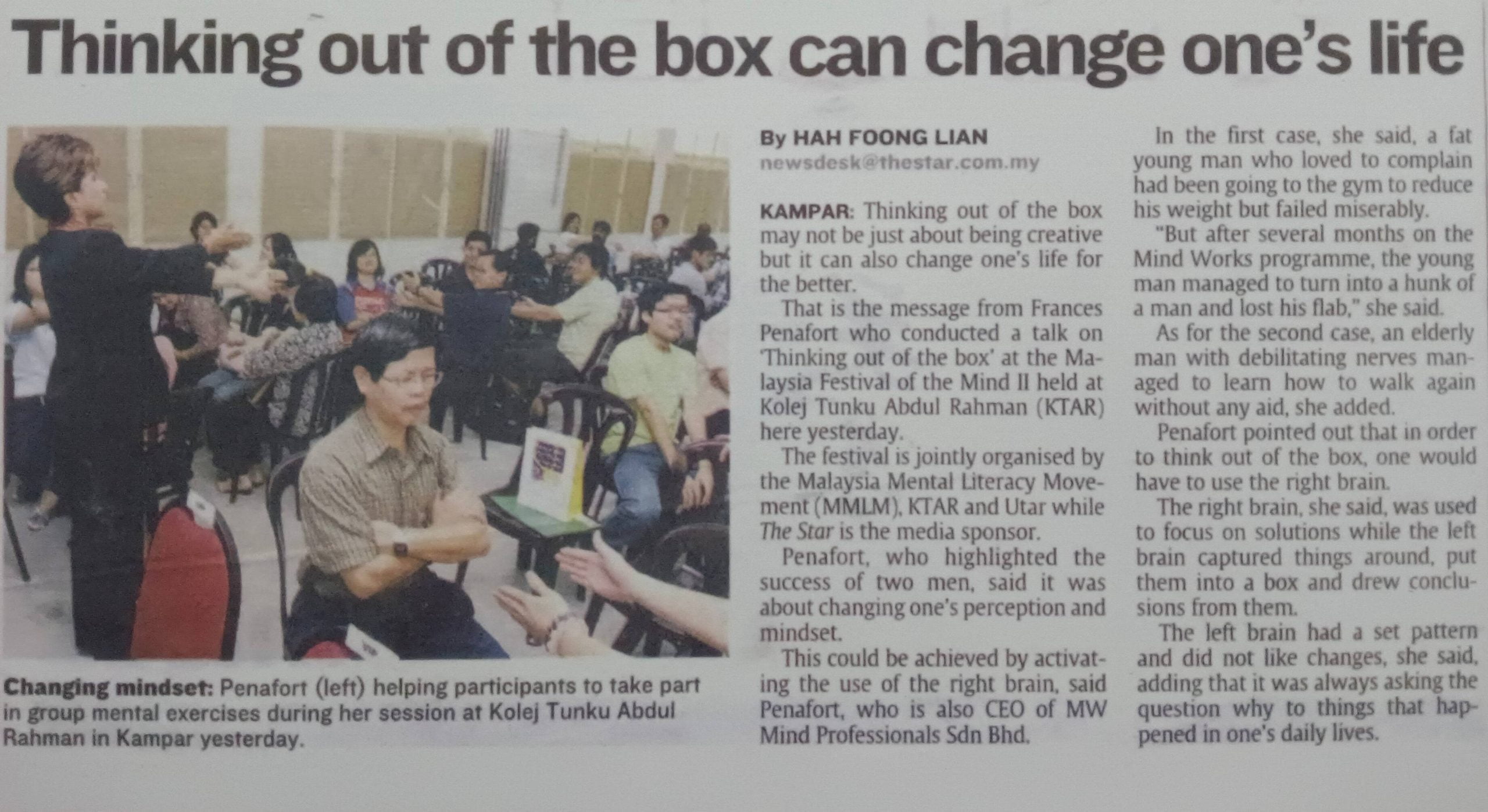 Dr Frances started the MINDWORKS PROGRAM in 1999, as she believed strongly in the Power of MIND. She spent years doing research and participating in workshops, both locally and overseas, to learn about how powerful the mind can be. One of the strongest associations where she learnt and contributed to her growing knowledge was the Mind Science Association Malaysia.